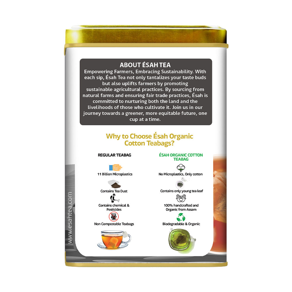 The array of plastic-free biodegradable Organic cotton teabags to provide enough room to the leaves to unfurl evenly, guaranteeing the goodness of the nutrients and keeping the essence and flavour intact.